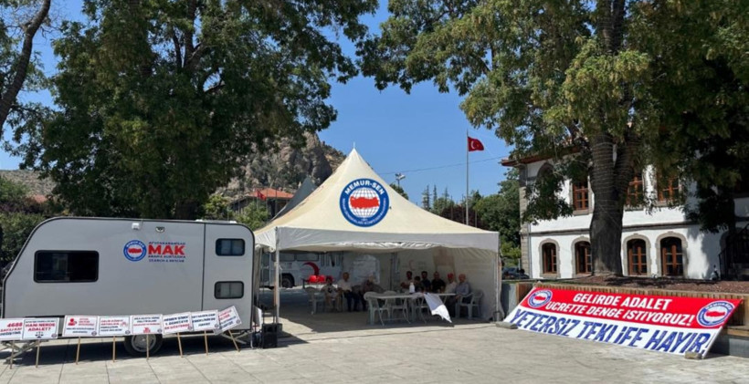 Çadırlara “Memur-Emekli Eylemde” ve “Yetersiz Teklife Hayır” pankartları asıldı. Üyeler “Memuruz haklıyız, kazanacağız”, “Sözler havada, memur sahada” sloganları attı ve halay çektiler.